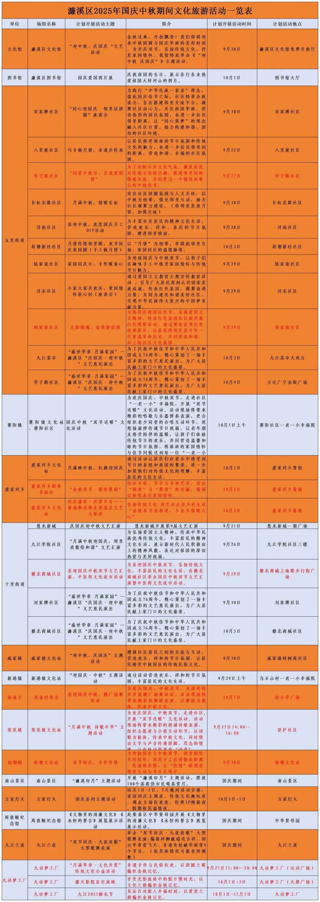 宋家牌、浔东社区开座谈会,搭交流平台、传爱国情怀;八里坡、荷塘新村社区设手工坊,教做月饼传非遗;陆家垅社区以童心手作为载体,融家国与传统教育。阎家垅社区展红色影片,九江茶市、学子路社区办文艺演出。更有长虹北路社区赠月饼、浔南社区 DIY 活动,多样活动拉近距离,共庆双节。关注所在社区通知,共赴双节团圆之约~